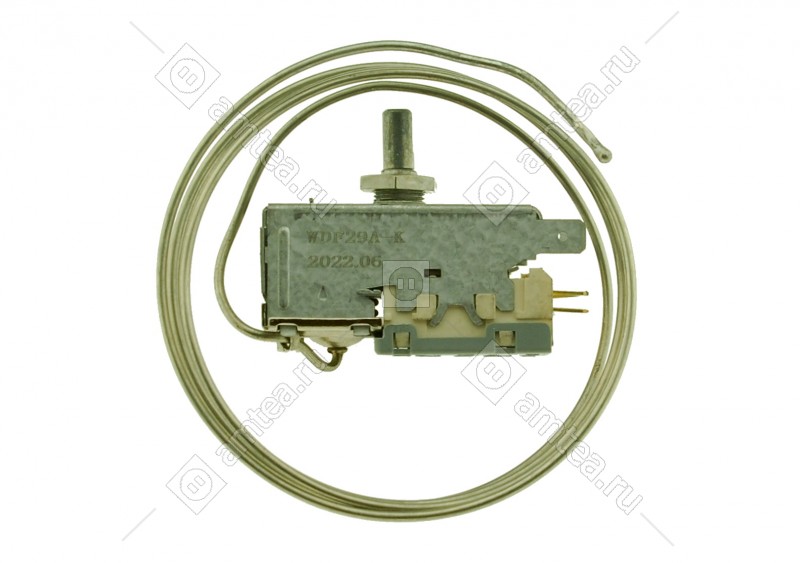 Терморегулятор Jiujiang HengTong WDF29A-K (K-59) с длиной трубки 0,8 метра (артикул 908081829756) является штатной запчастью для многих современных и классических двухкамерных холодильников ATLANT и Минск с «плачущим» испарителем.