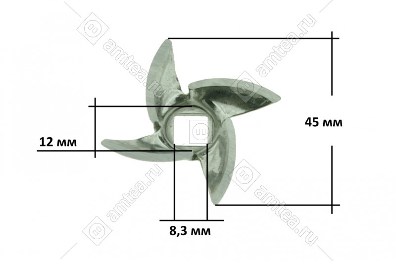 Нож: четырехгранник, D = 45 мм, сторона квадрата посадки = 8,3 мм