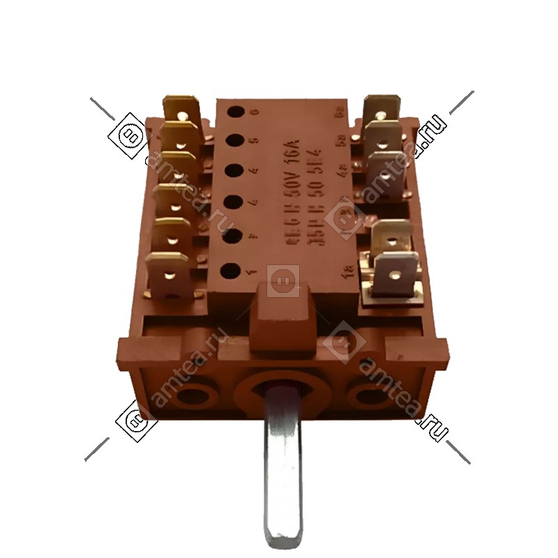 Переключатель режимов духового шкафа Midea с партномером 17471100000345 (маркировка FD103M) является 10-позиционным (9 рабочих режимов + 0) и широко применяется не только в технике Midea, но и в духовых шкафах других брендов, выпускаемых на заводах этого концерна.