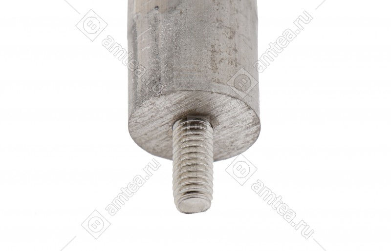 Анод – это тонкий круглый стержень, на который нанесен слой магниевого сплава. В центре этого стержня находится резьбовая шпилька М4, М6, М8 и тд.при помощи которой он крепится рядом с ТЭНом.Задача анода – предотвращение образования накипи на ТЭНе. При нагревании воды накипь образуется в результате выпавших в осадок солей тяжелых металлов. За счет повышенной активности магния они вступают в реакцию с ним, а не с железом, из которого сделаны стенки бака. Плотная, как камень, накипь, делается рыхлой, отделяется от стенок бака и ТЭНа и хлопьями осаждается на дно. Мягкую накипь легко удалить во время чистки прибора.