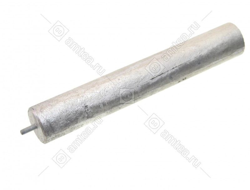 Анод – это тонкий круглый стержень, на который нанесен слой магниевого сплава. В центре этого стержня находится резьбовая шпилька М4, М6, М8 и тд.при помощи которой он крепится рядом с ТЭНом.Задача анода – предотвращение образования накипи на ТЭНе. При нагревании воды накипь образуется в результате выпавших в осадок солей тяжелых металлов. За счет повышенной активности магния они вступают в реакцию с ним, а не с железом, из которого сделаны стенки бака. Плотная, как камень, накипь, делается рыхлой, отделяется от стенок бака и ТЭНа и хлопьями осаждается на дно. Мягкую накипь легко удалить во время чистки прибора.
