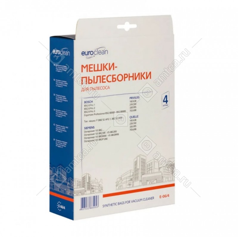 Чтобы купить Купить Мешки пылесборники, 4 шт Euroclean для пылесоса E-06/4 в Северодвинске : цена, характеристики в магазине Амтеа | МЕШП052 в Северодвинске Вам необходимо выбрать необходимое количество товара на ближайшем складе и нажать кнопку "В Корзину".